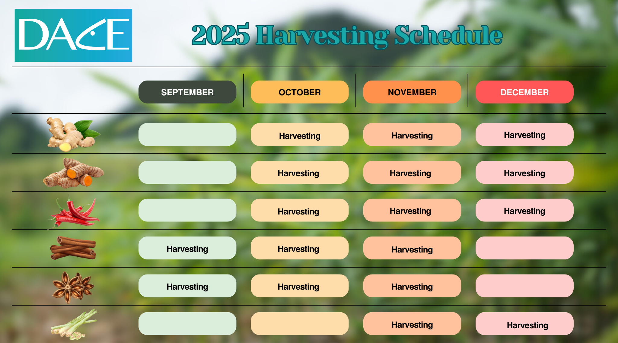 Driven by diligence, honesty, and a commitment to sustainability, DACE brings Vietnamese organic spices—nurtured by nature—to the world, aiming for 3,000 hectares by 2030.